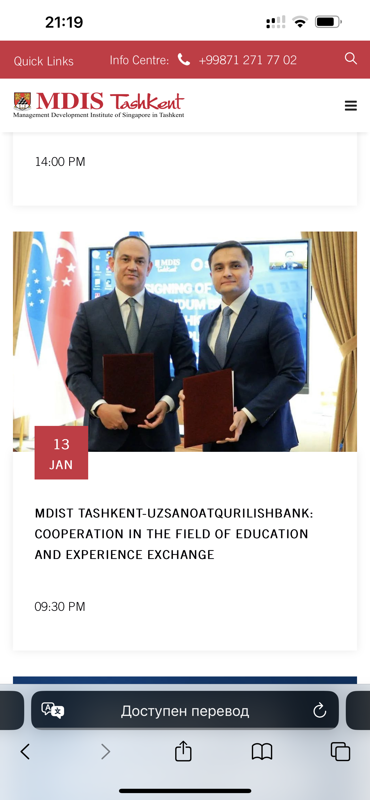 On January 12, 2024, a memorandum of understanding was signed between MDIS Tashkent and Uzsanoatkurilishbank.