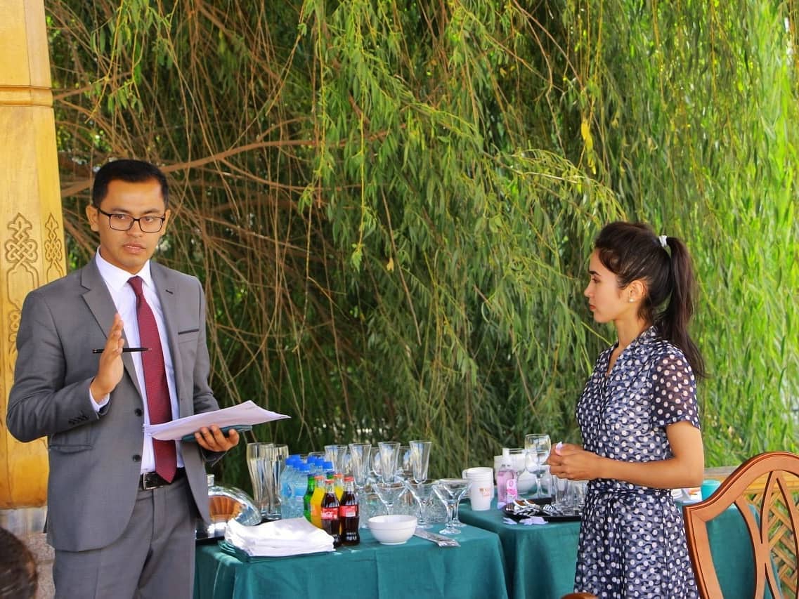The training was conducted by Mr. Otabek Kattabekov, Food & Beverage and restaurant management specialist with over 10 years experience in international hotel chains and local hotels such as Lotte City Hotel Tashkent Palace, Tashkent Palace Hotel, Miran International Hotel, and Hilton Tashkent City.