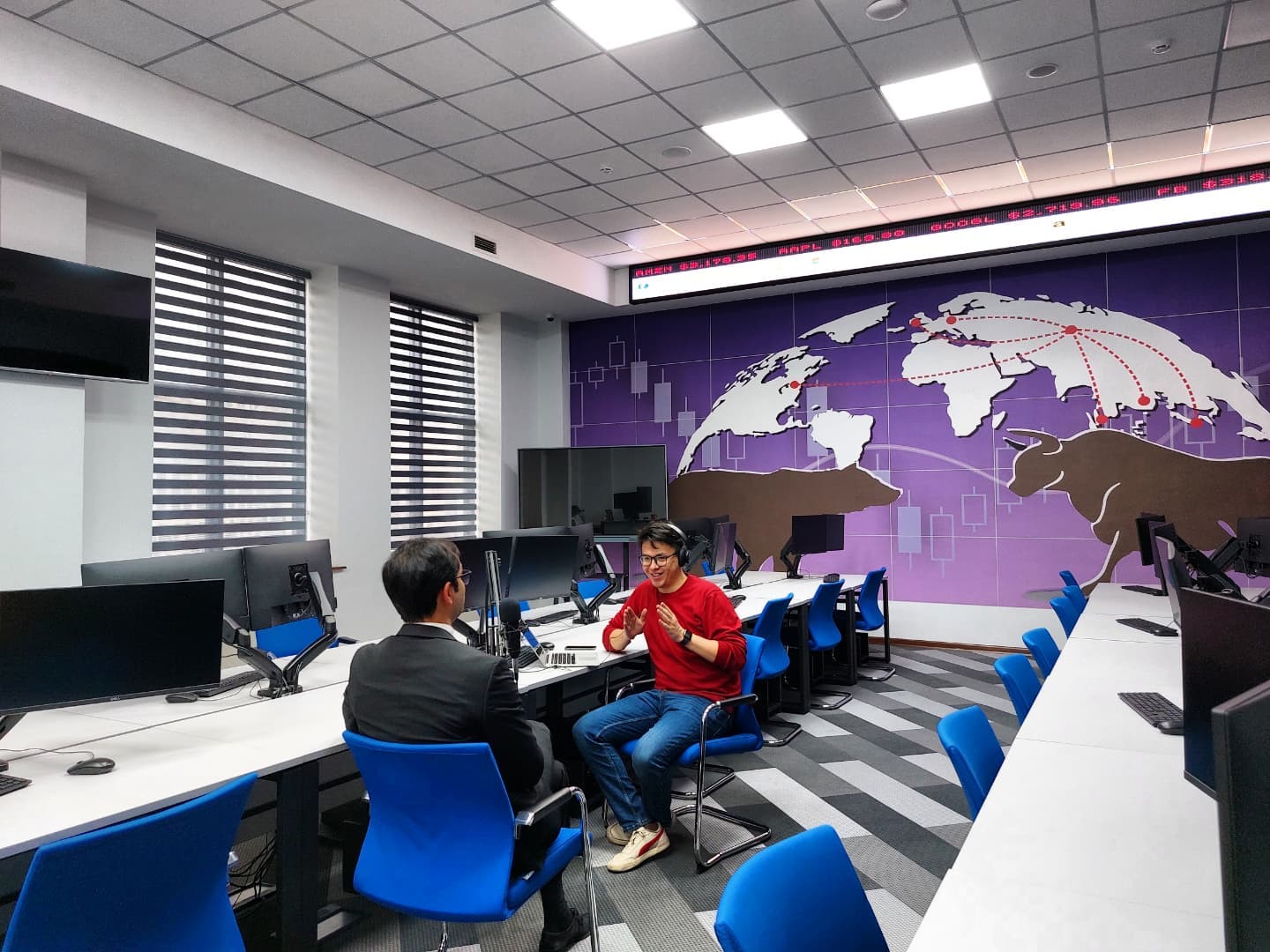 Recording the podcast about Trading Financial Instruments for the TBC UZ FINEDU (Financial Education) project. Mr Jahongir Madmusaev, from Repost.uz and Kapital.uz is interviewing Mr Akhliyor Ibragimov, MDIS Tashkent Financial Laboratory Mentor.