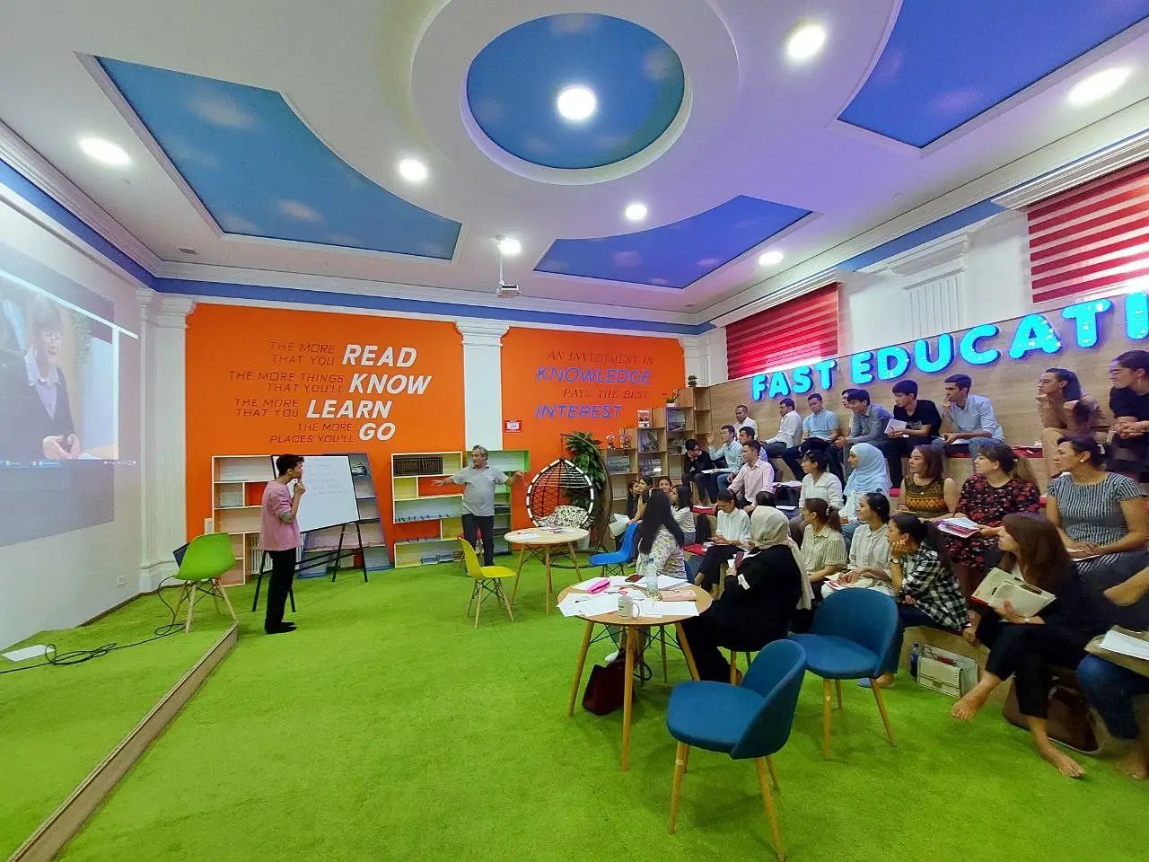 TSMRIning katta o'qituvchisi hamda IELTS elchisi hisoblanadigan Murod Ismoilov mohirlik bilan o'tkazgan mashg'ulotlar "Fast Education" o'quv markazida bo'lib o'tdi va asosan IELTS hamda unda ta'lim berishdagi integratsiyalashgan ko'nikmalarning interfaol shakllariga bag'ishlandi.